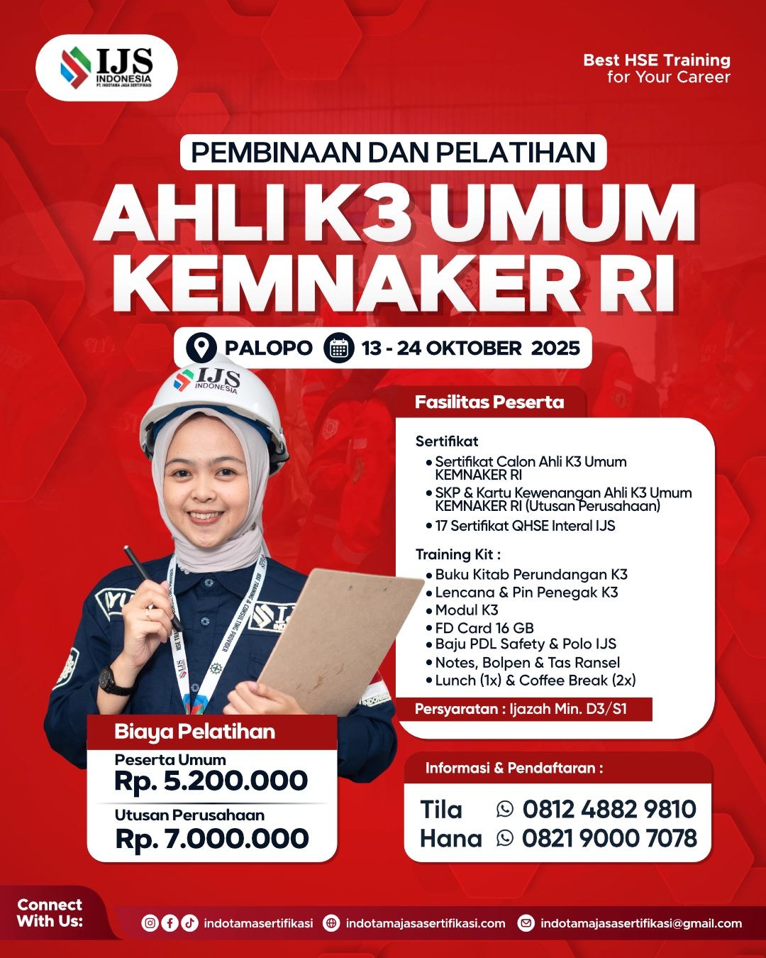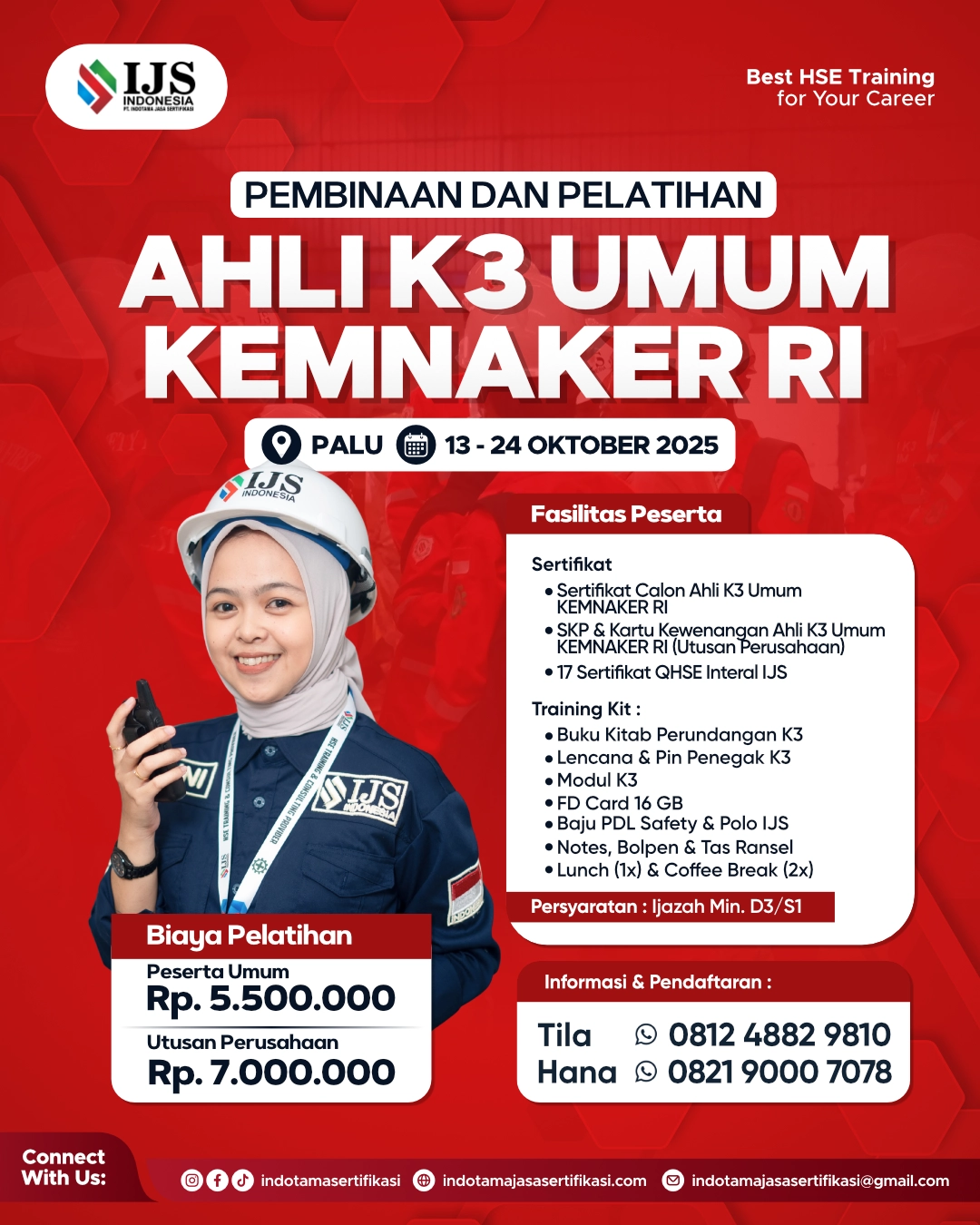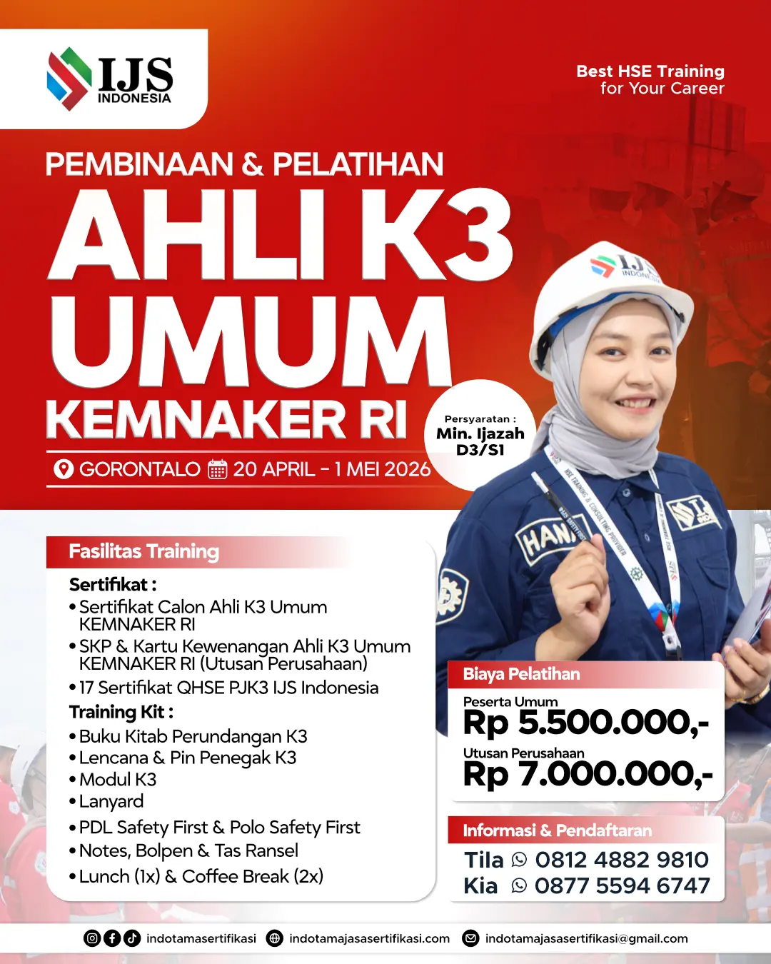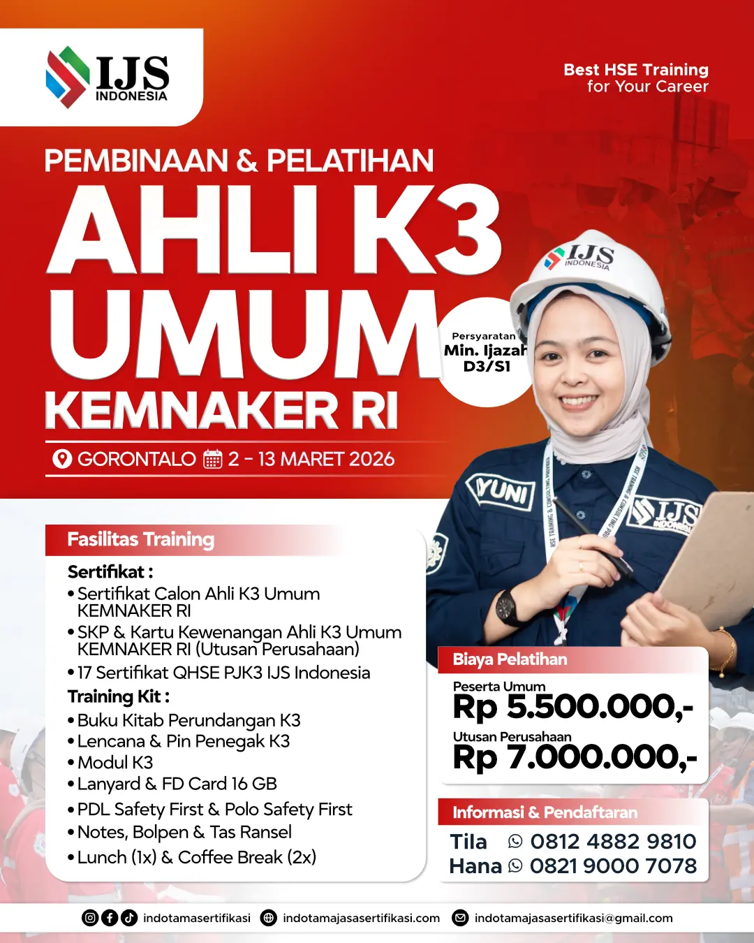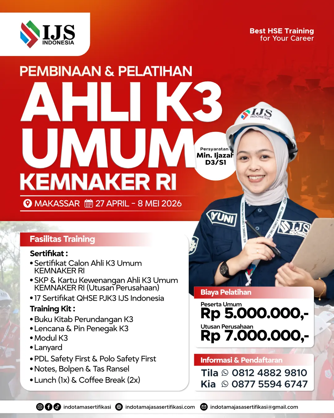 Perusahaan Jasa Keselamatan dan Kesehatan Kerja atau disingkat PJK3 yang bergerak di bidang jasa konsultan dan pembinaan keselamatan dan kesehatan kerja (K3), bidang fabrikasi, pemeliharaan, reparasi dan instalasi teknik K3, bidang jasa pemeriksaan dan pengujian teknik K3, pemeriksaan dan pengujian/pelayanan kesehatan kerja. PT Indotama Jasa Sertifikasi atau disebut IJS Indonesia memberikan layanan jasa konsultan dan pembinaan K3, serta layanan jasa akreditasi dan sertifikasi perusahaan seperti ISO dan Audit SMK3 PP No. 50 tahun 2012.