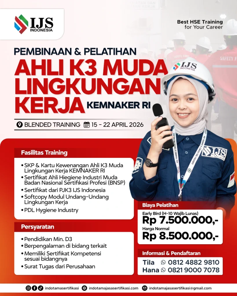 Ahli K3 Muda Lingkungan Kerja Kemnaker RI
